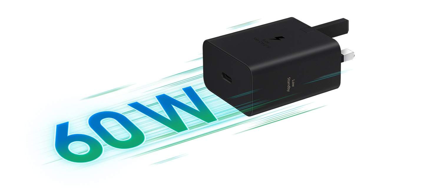 Experience next-level charging speed with 60 W Power Adapter's Super Fast Charging technology. Designed for Galaxy smartphones, tablets, and Galaxy Books.