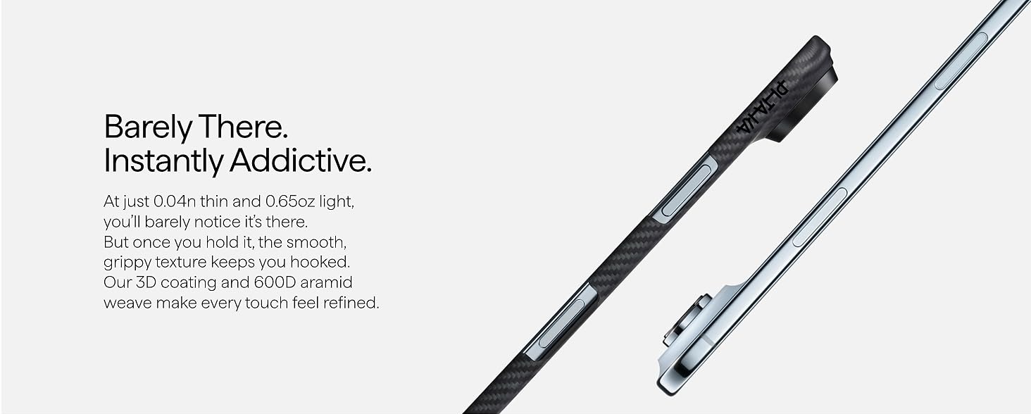 Designed with premium aramid fiber, the PITAKA case delivers exceptional durability while maintaining a slim and lightweight profile. Its textured finish provides a comfortable grip, while precise cutouts ensure seamless access to all buttons and ports. Built for modern convenience, this case supports wireless charging and enhances your device with a minimalist yet stylish look.
